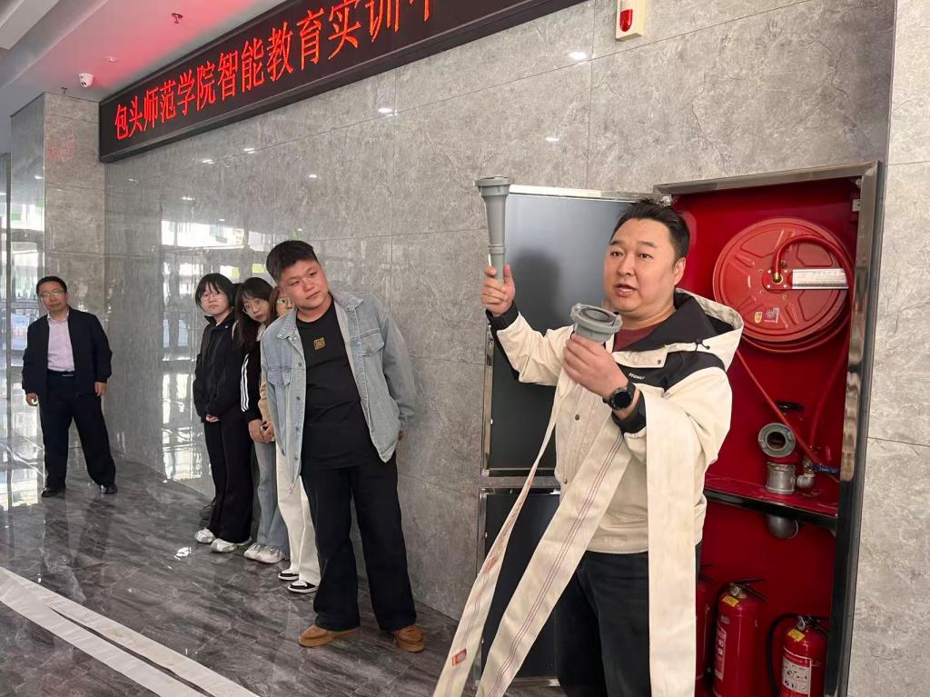 在实操环节,高峰老师亲自示范了干粉灭火器“提、拔、握、压”的四步操作法,并详细讲解了消防栓水带连接与开启阀门的关键动作。针对大家容易疏忽的细节,如灭火时需站在上风方向、对准火焰根部喷射、消防水阀开启时要用手压低软管喷头以防误伤自己等,高老师逐一进行了强调。高老师的讲解专业、细致、形象、生动,赢得在场师生一致称赞。