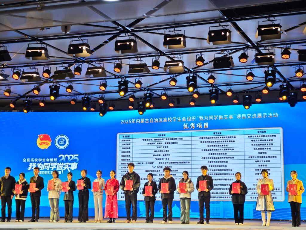 10月19日至20日,由自治区团委指导、自治区学联主办、内蒙古建筑职业技术大学团委承办的2025年全区高校学生会组织“我为同学做实事”项目交流展示活动在内蒙古建筑职业技术大学圆满落幕,全区各高校共50个优秀项目进入路演答辩和项目展示环节。我院“‘四位一体+校地校友联动’依托‘π Day’学术节开展‘我为同学做实事’”项目代表我校参赛并获评“优秀项目”。