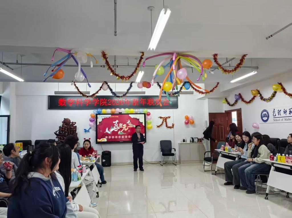 为喜迎新年、丰富师生文化生活,12月31日下午,数学科学学院在1408会议室隆重举办2026年元旦联欢会。学院党政领导、全体教师及学生代表欢聚一堂,共迎新年。