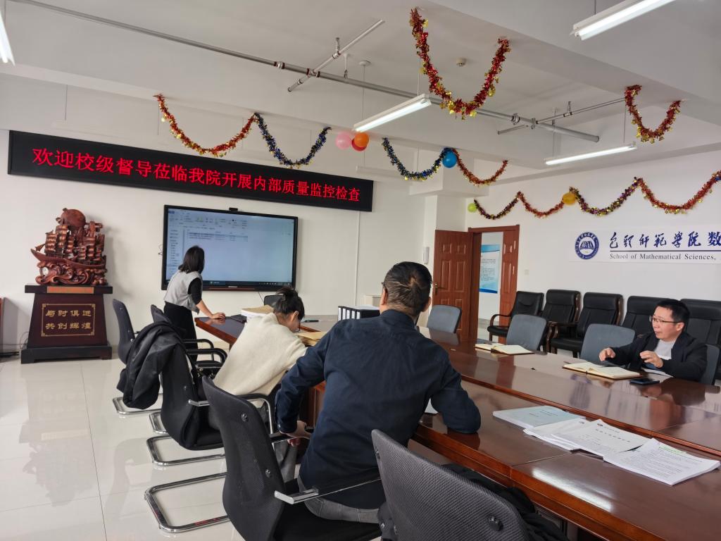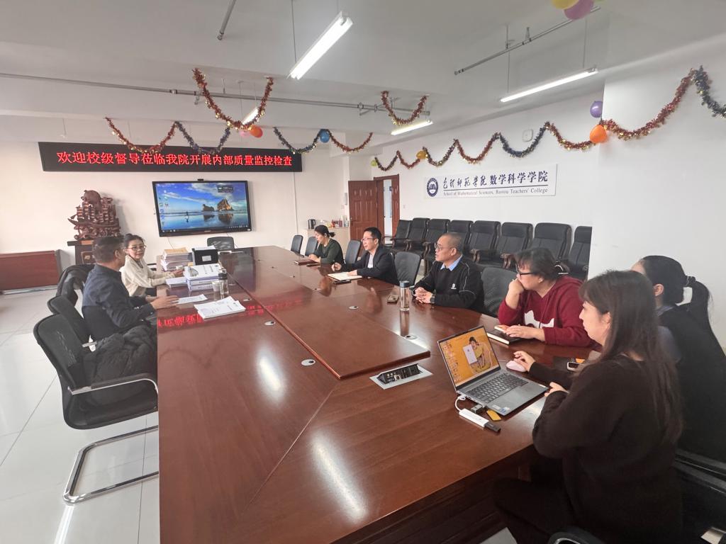 2026年1月7日上午,校级督导宁小莉、胡利军一行莅临数学科学学院,开展内部教学质量专项检查。学院院长徐国明、教学院长王丽花、各系主任、实践部主任以及教务办、学工办相关教师参加了本次检查会议。